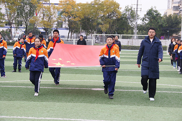 伴随着雄壮的国歌声,五星红旗冉冉升起,拉开了开学典礼的序幕。