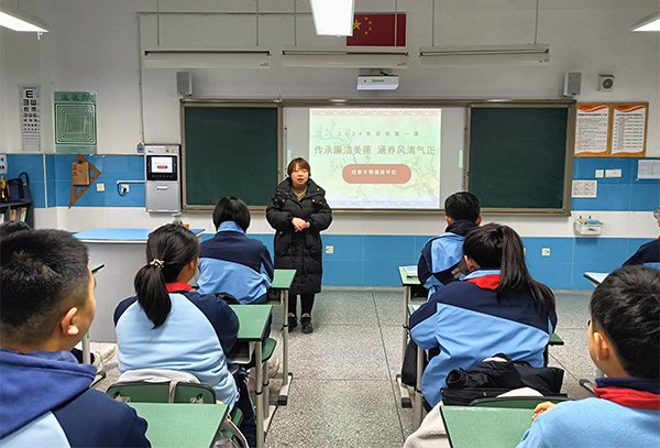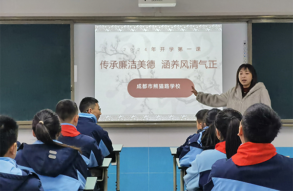 百姓生活讯 金龙舞春,暖风轻拂。满载着憧憬与希望的2024年春季开学如约而至。为了进一步弘扬清正廉洁的校园文化,成都市熊猫路学校开启了“传承廉洁美德 涵养风清气正”的开学第一课。